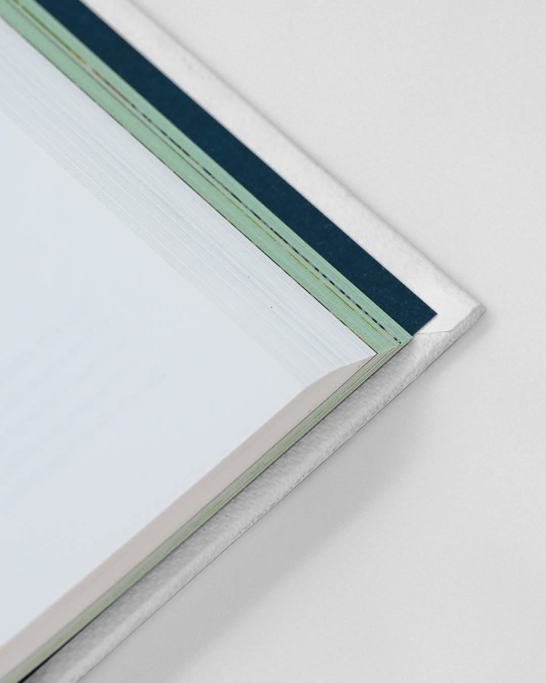 Capa dura com lombo redondo, revestido do papel Imitlin, miolo Munken e Eurobulk.