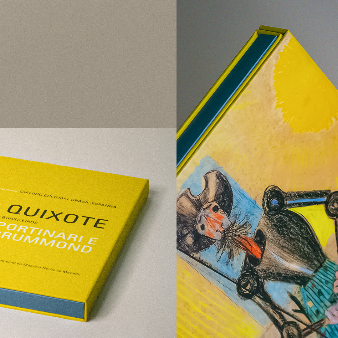 O livro bilíngue Dom Quixote Visto pelos Artistas Brasileiros Portinari e Drummond celebra o encontro entre Miguel de Cervantes, Cândido Portinari e Carlos Drummond de Andrade, unindo literatura, arte e poesia em um projeto gráfico contemporâneo de Lígia Melges, com trilha sonora de Norberto Macedo.