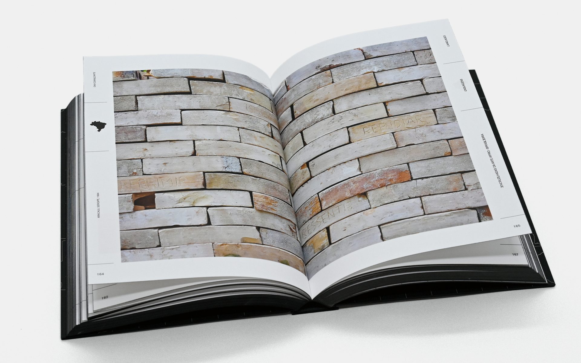 Capa dura com lombo quadrado, papelão preto aparente e pintura trilateral